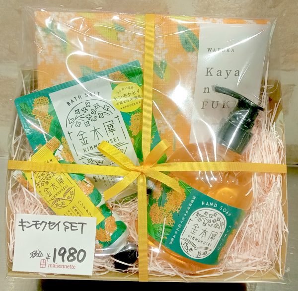 ハンカチと大人気キンモクセイの香りのワセリン、ハンドクリームのセットです♪